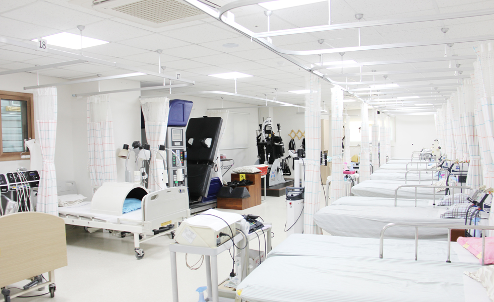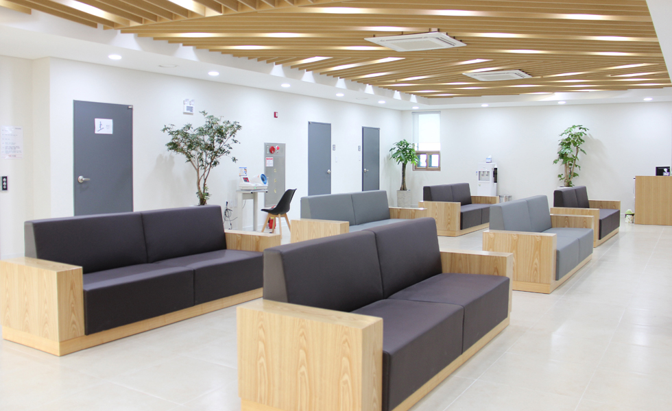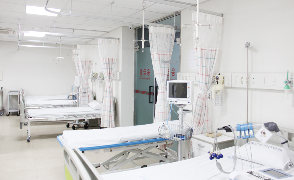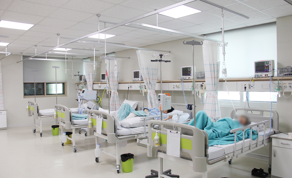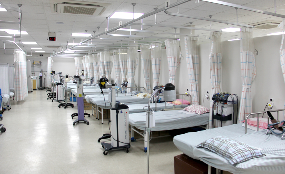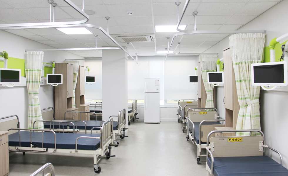 로비, 원무과, 병동, 수술실, 검사실, 통합재활센터, 건강검진센터 (※ 엠오디 스마트케어 시스템 : 병실의 1인실화. 개인TV시청, 간호사 호출, 환자별 맞춤 스케줄링 및 정보제공)